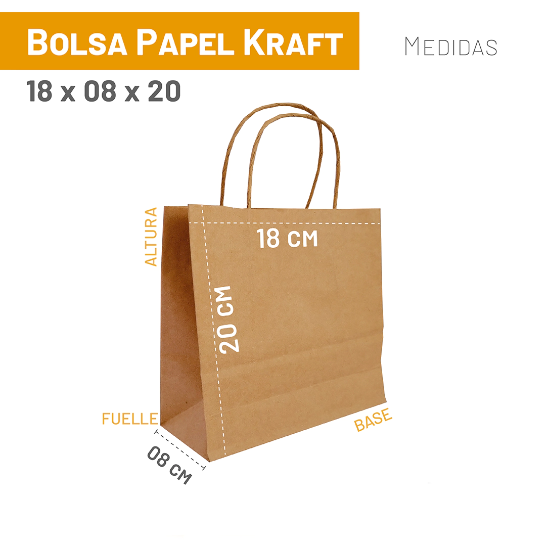 Bolsas Kraft 18x08x20 cm x 100 u